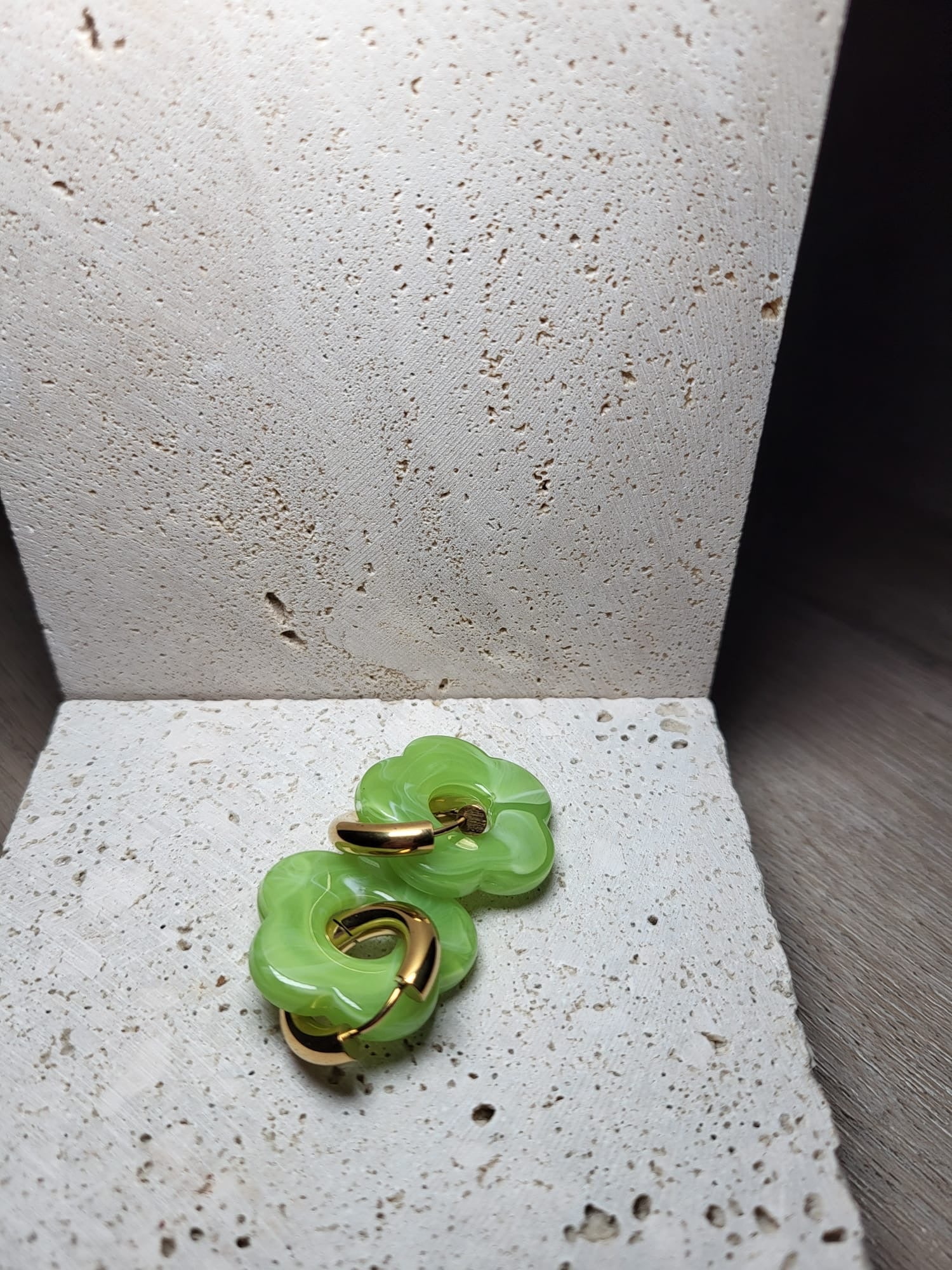 Rosy is one of those earrings I reach for without a second thought. The soft, light green flower adds a fresh, playful touch, while the gold ring creates a warm balance. Not too flashy, but just enough to make your look just a little more fun.