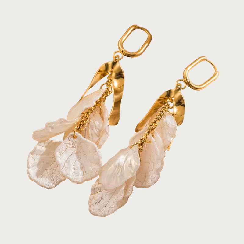 Made of high-quality stainless steel and acrylic petals, they remain lightweight, comfortable, and colorfast. They're perfect for a romantic outfit, a night out, or simply because you're in the mood for something special. Golden Petal Flow is elegant, striking, and beautifully feminine.