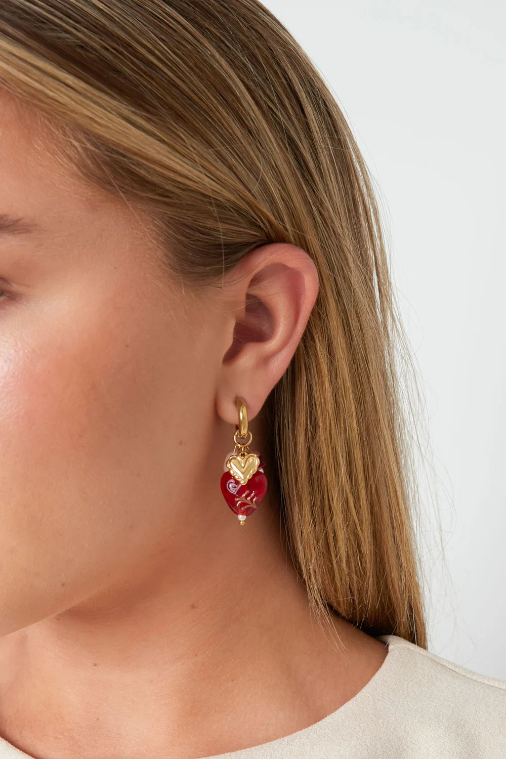 The Pastel Heart Pink earrings bring a soft pop of color to your jewelry collection. The delicate hoop is finished with a heart-shaped pendant in a warm pastel pink hue, creating a feminine and fresh look.