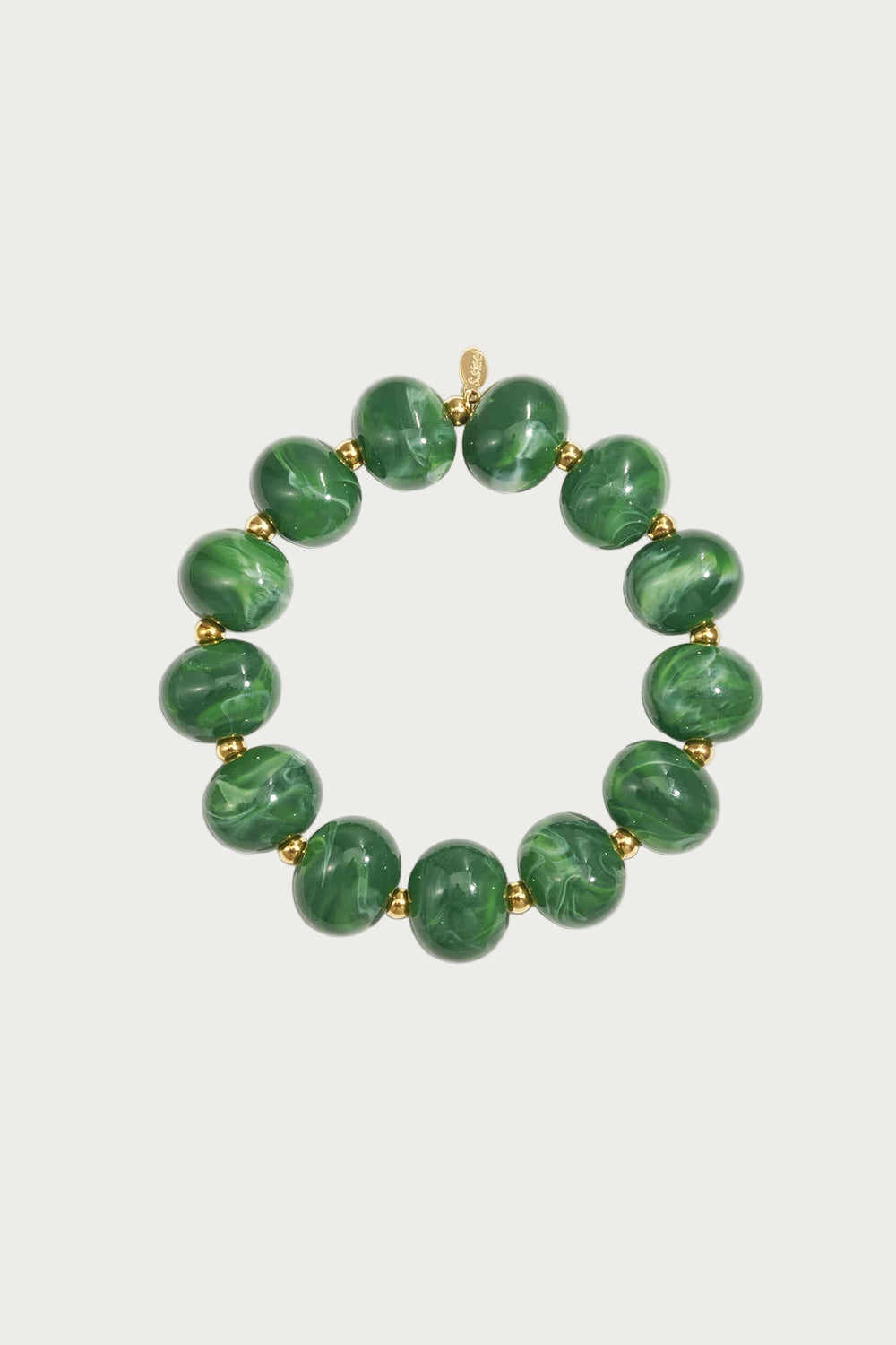 The Rosalie bracelet is made for anyone who loves color, style, and a touch of playfulness. The green tones have a beautiful marbled effect, making each bead unique. The gold accents create a luxurious finish that pairs beautifully with both minimalist and statement jewelry.