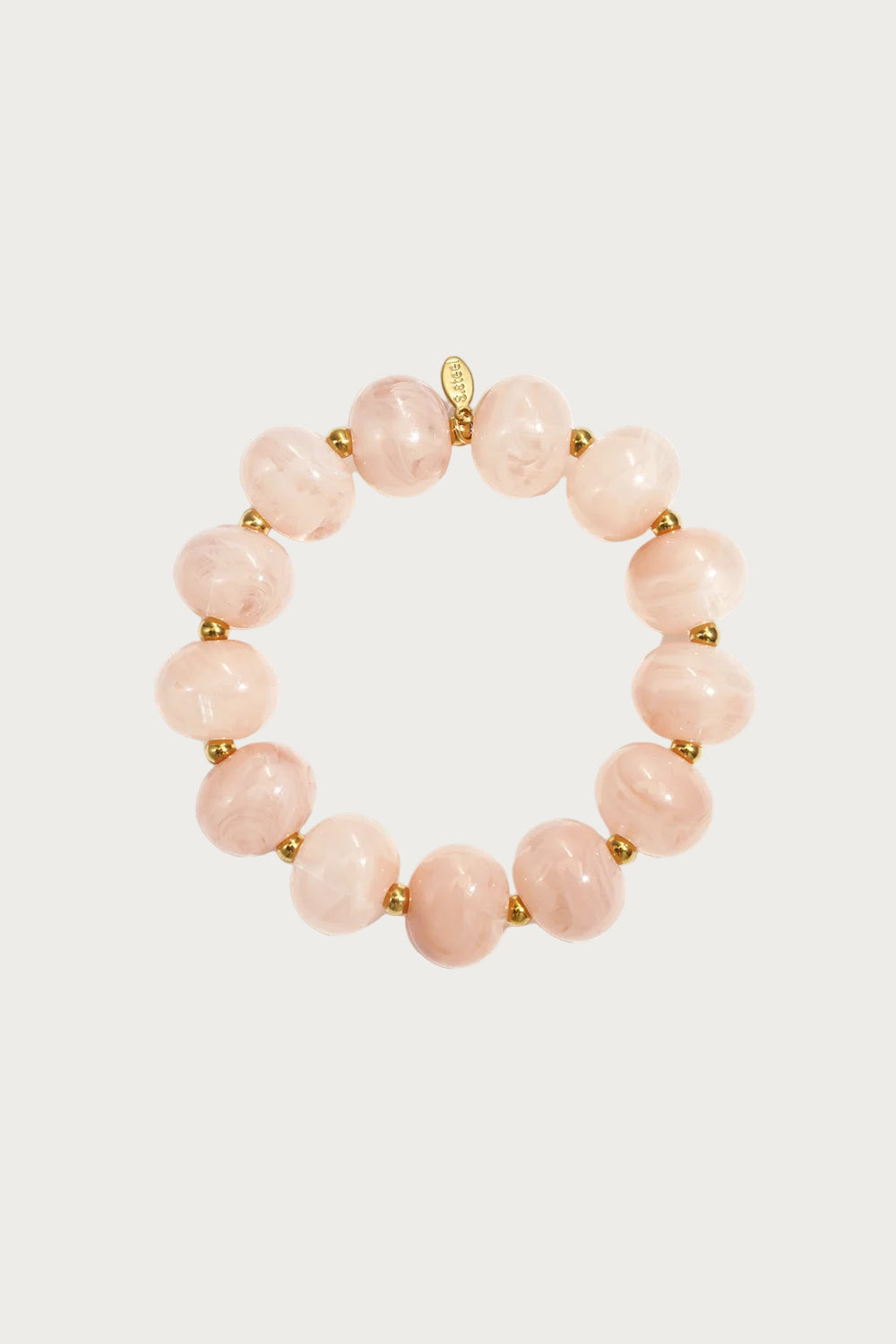 The Rosalie bracelet is a soft, elegant addition to any jewelry collection. The light pink resin beads have a subtle marbled effect, giving the bracelet a luxurious, almost blush-like look.
