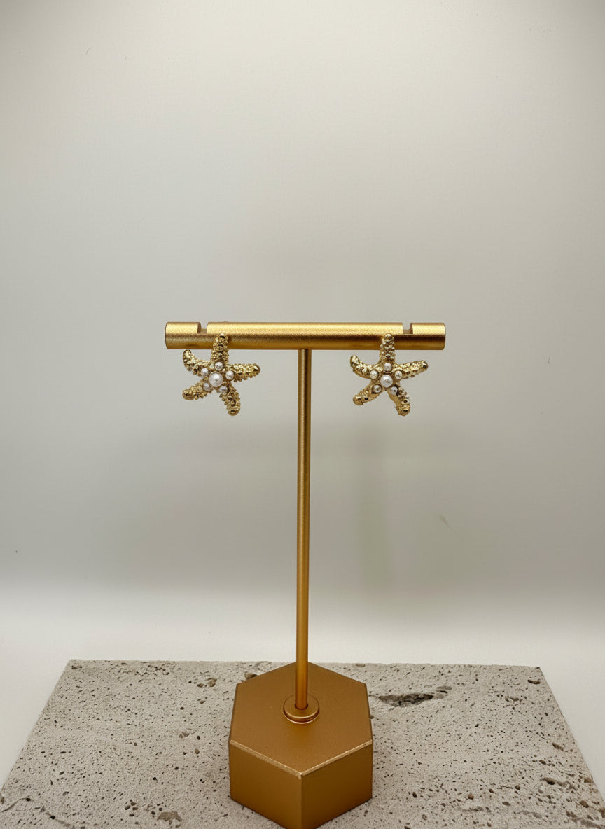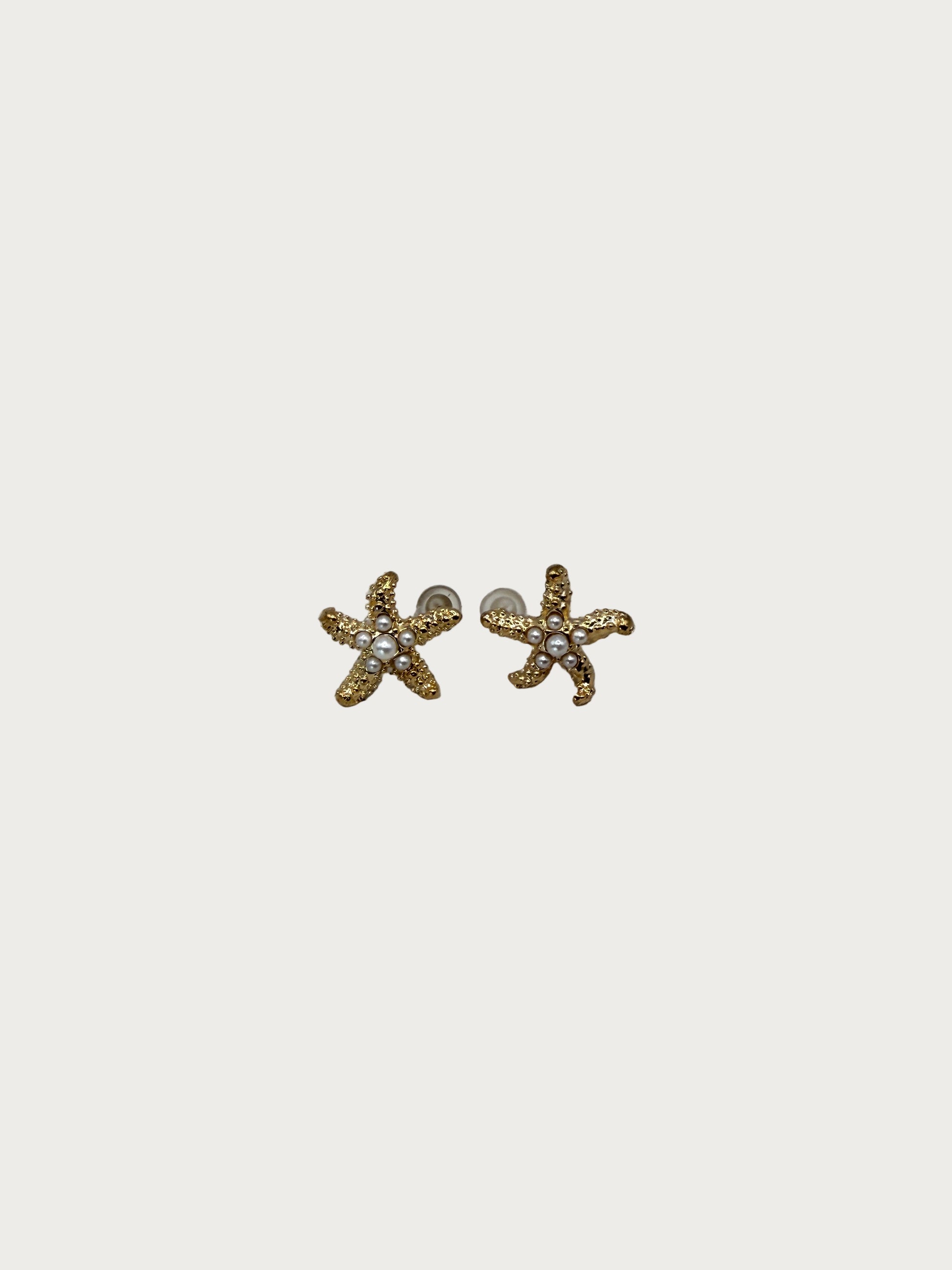 The Starry Pearl earrings bring that summery beach vibe to any outfit. The star-shaped design is playful and striking, with subtle pearl accents that give the piece a feminine, luxurious look. The gold finish makes them perfect for both everyday wear and special occasions.